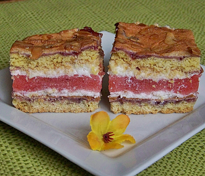 To ciasto podbiło moje serce dawno temu, podbiło je zarówno swoją smaczną nazwą, ale przede wszystkim obłędnym smakiem. Kruche blaty ciasta, słodka beza, mus malinowy, migdały i bita śmietana. Niebo w gębie. Serdecznie polecam!