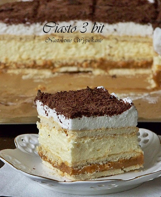 Bardzo popularne ciasto, które zachwyca swoim smakiem, zbliżonym do batonika 3 bit. Składa się z 3 warstw herbatników, kajmaku, masy budyniowej, bitej śmietany i startej, ciemnej czekolady. Nie wymaga pieczenia, doskonałe na każdą okazję. Ciasto najlepiej przygotować dzień wcześniej, by herbatniki zmiękły. Gorąco polecam! 🙂