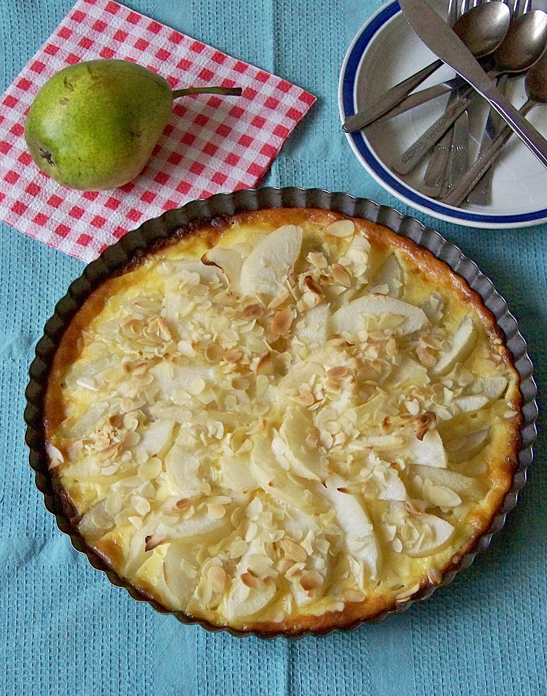 Rewelacyjna tarta: kruchutki spód, słodki sos śmietankowy, kwaskowate, jesienne gruszki, a wszystko to obficie obsypane płatkami migdałowymi. Wyobraźcie sobie chłodny, jesienny wieczór i tartę gruszkową, która pachnie w całym domu i rozgrzewa Wasze podniebienie…poezja! 🙂