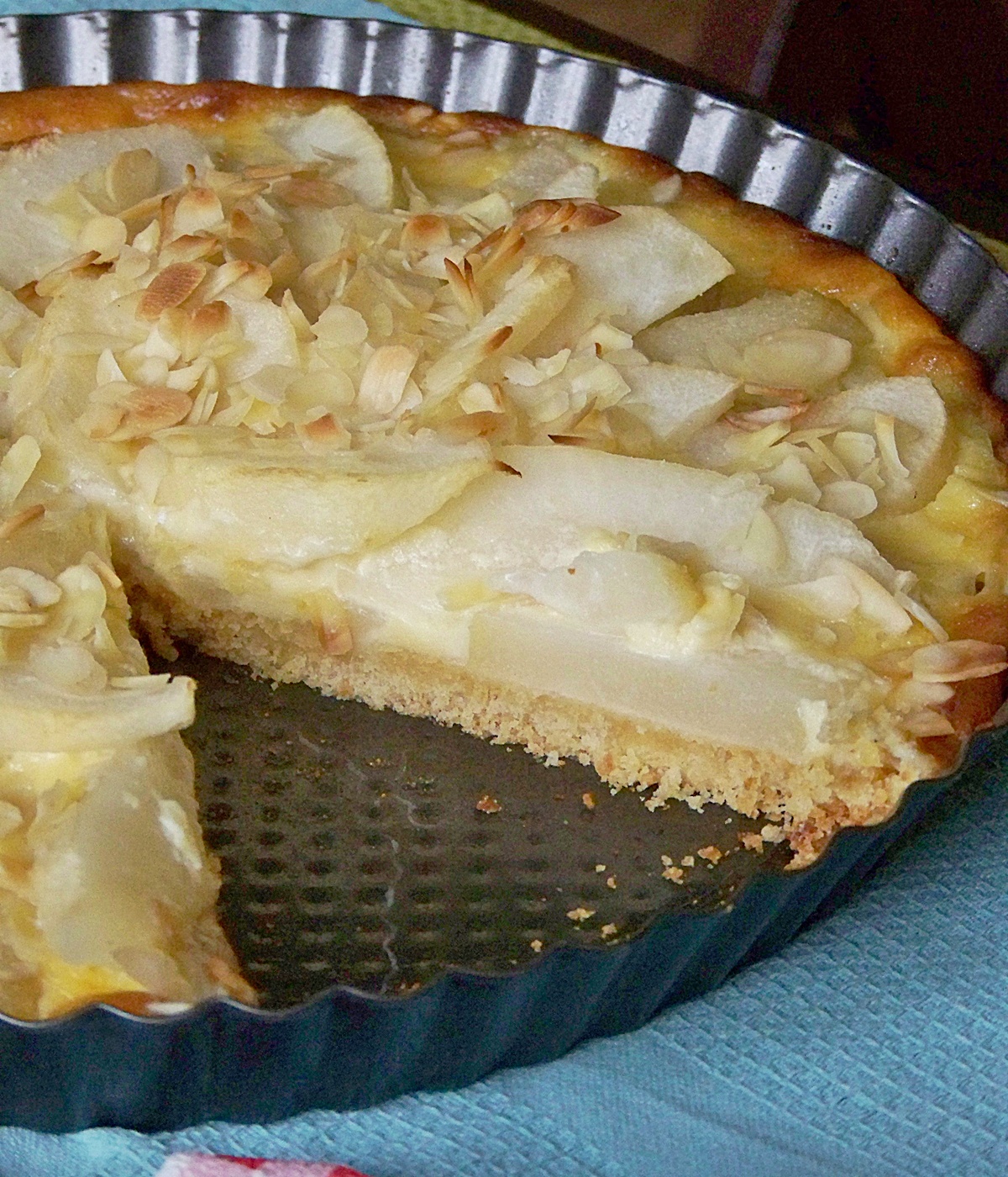 Tarta gruszkowa w sosie śmietanowym z migdałami