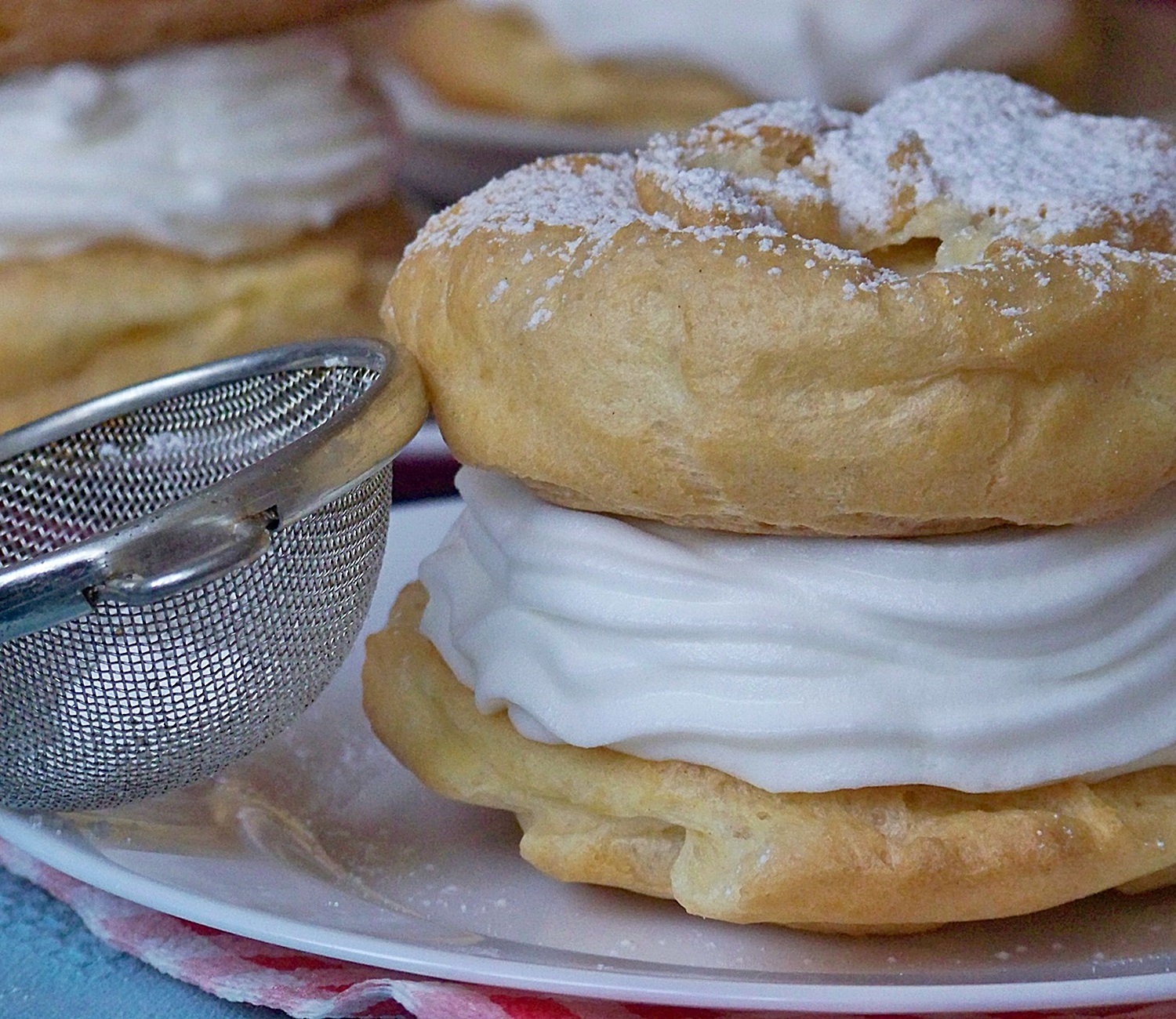 Ptysie to nic innego jak ciastka z ciasta parzonego, które po upieczeniu najczęściej przecina się wzdłuż i nadziewa, np. bitą śmietaną. Dziś zapraszam na tradycyjny przepis, który jest po prostu niezawodny! Ptysie pięknie pęcznieją podczas pieczenia, są lekkie, bardzo delikatne, a słodka bita śmietana kusi jak nikt inny! Polecam 😉