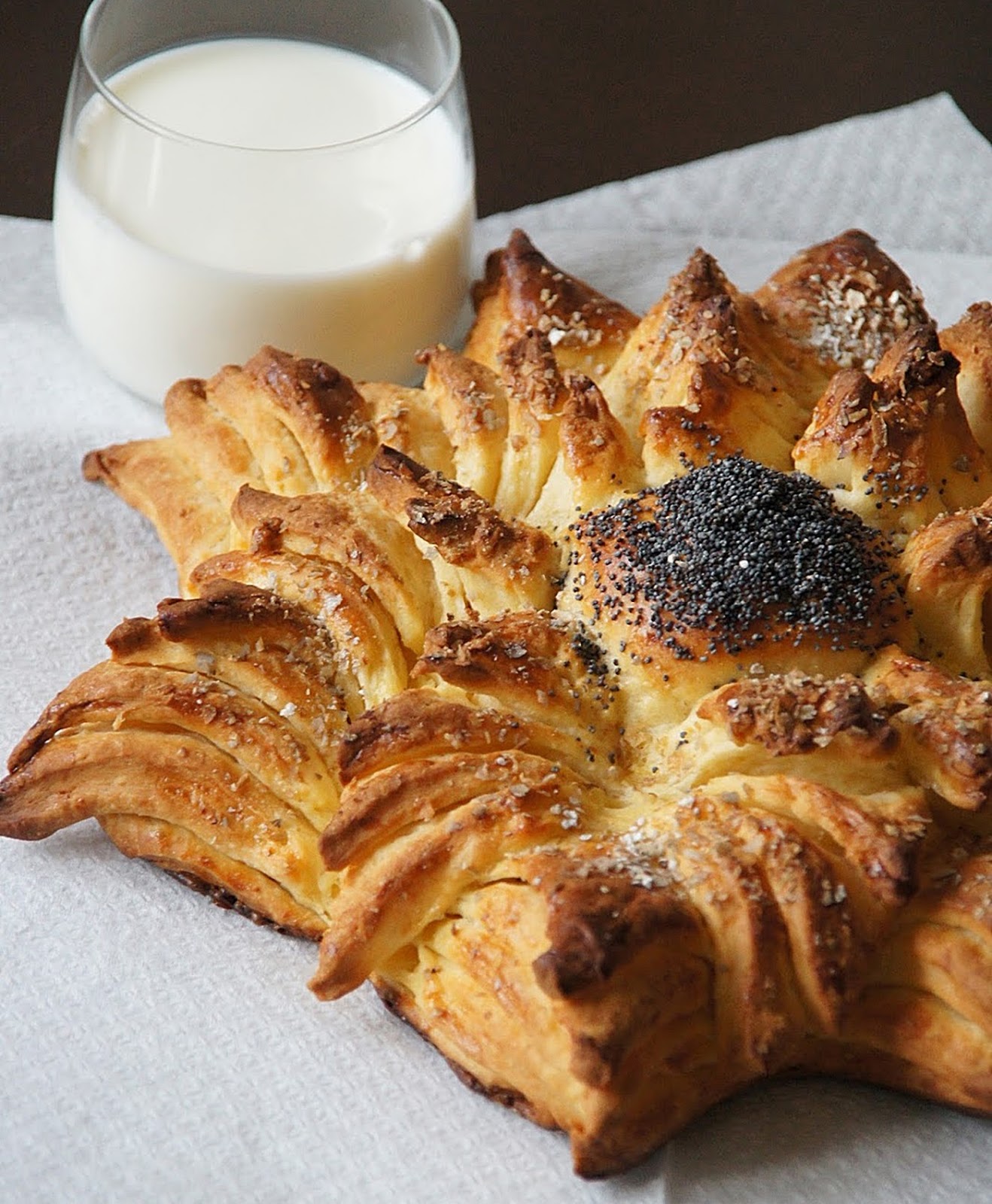 Takiego chlebka chyba jeszcze nie widzieliście! Wymaga troszkę cierpliwości i wprawy, ale zapewniam, że efekt końcowy na pewno Was zadowoli. Intensywnie maślany, puszysty, wyśmienity ze szklanką mleka. Nazwałabym go raczej słodką, maślaną bułeczką, choć nazwa „chlebek” nadaje mu dodatkowego uroku 🙂 A przepis podpatrzyłam tutaj. Polecam!