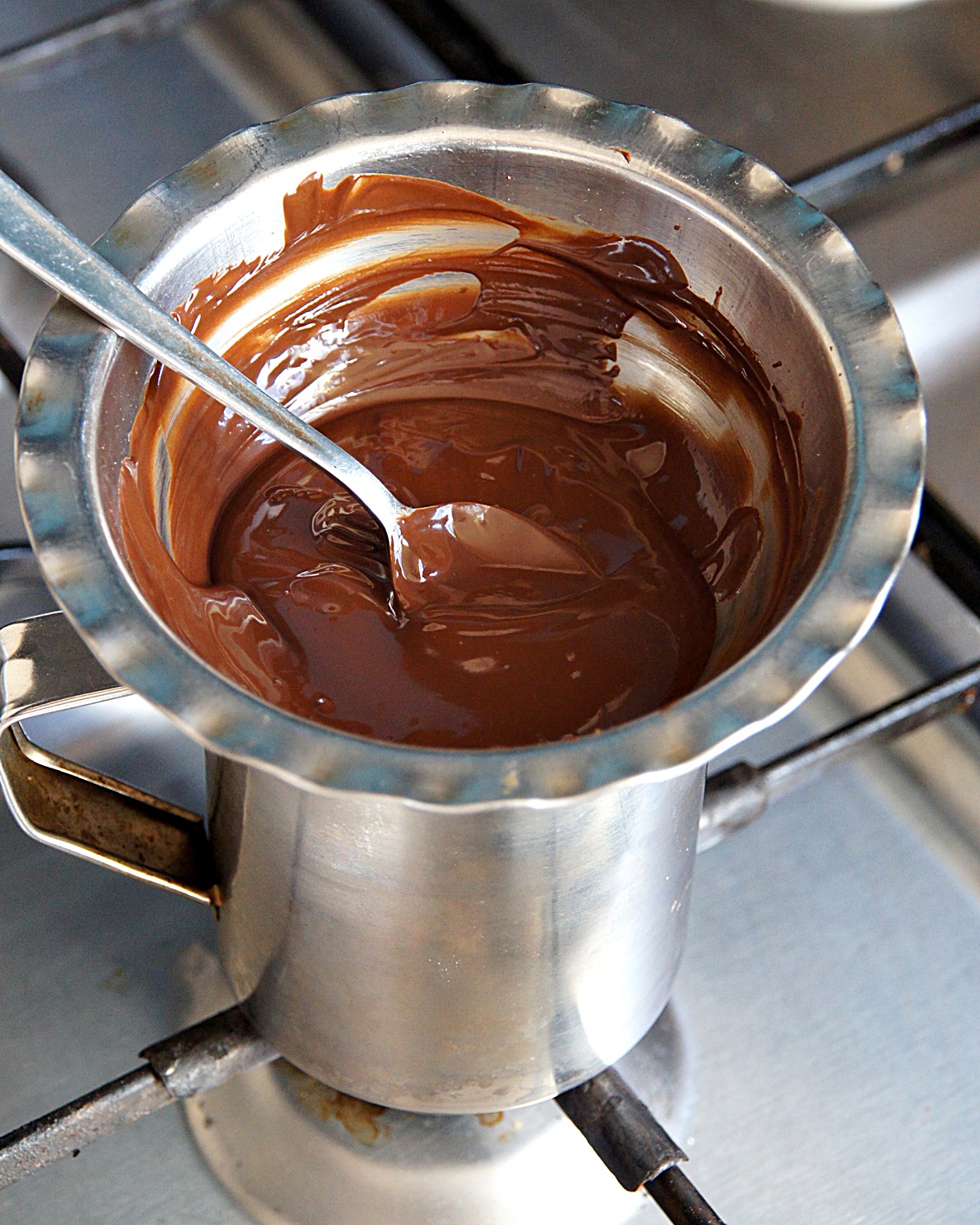Jak wiadomo, czekoladę można rozpuścić na kilka sposobów: w mikrofalówce, podgrzać w garnuszku, zostawić na słońcu, czy też właśnie w kąpieli wodnej.