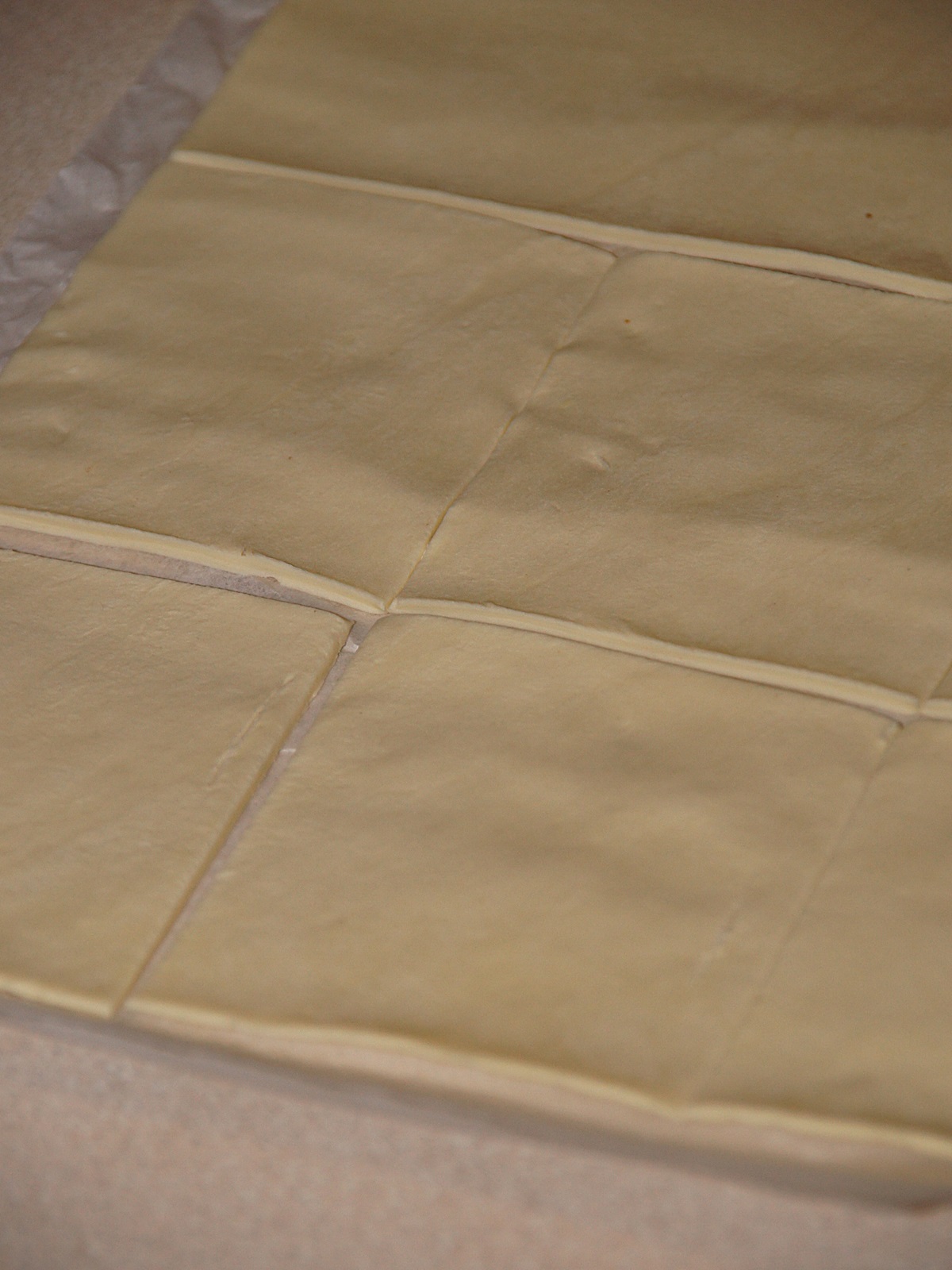 Do przygotowania tych trójkącików potrzebne nam jest ciasto francuskie. Jak wiecie, jakiś czas temu opublikowałam na blogu przepis na to właśnie ciasto (klik), które bez problemu można zrobić samemu w domu. Jeśli jednak nie mamy zbyt dużo czasu, możemy sięgnąć po kupne.
