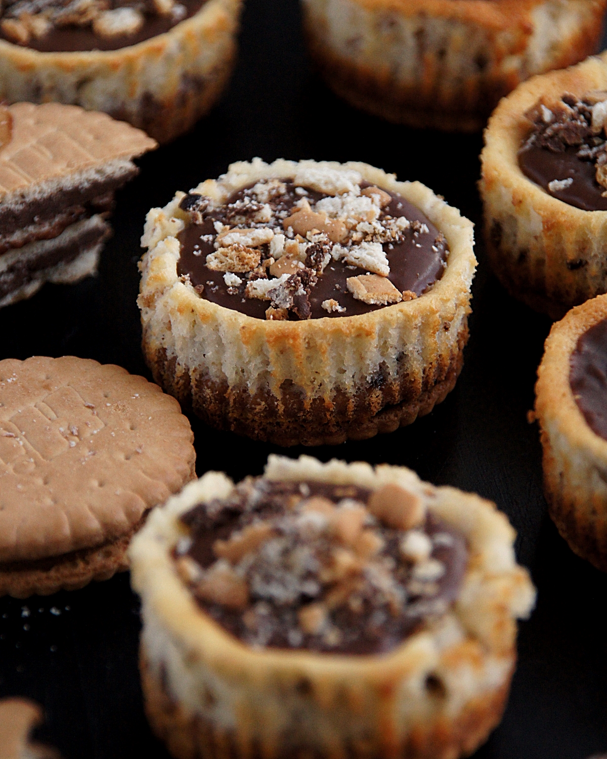 Masę serową rozlać po równo do 12 papilotek z ciastkami (nie do samej góry, gdyż serniczki urosną, a nie chcemy by wyciekły nam z papilotek. Dosłownie po kilka łyżeczek). Piec w piekarniku nagrzanym do 160 st.C przez około 20 minut do ścięcia. Wyjąć i ostudzić. Podczas studzenia delikatnie opadną.