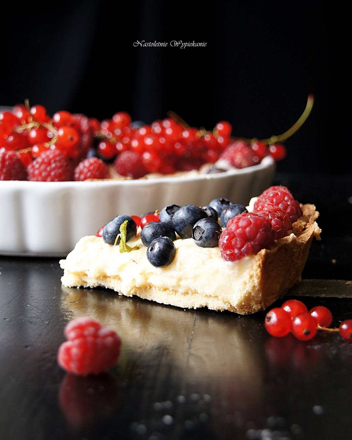 Obok tej tarty nie można przejść obojętnie. Duża ilość leśnych owoców (malin, borówek, porzeczek) oraz krem patissiere o lekko migdałowym smaku. Kwintesencja lata!