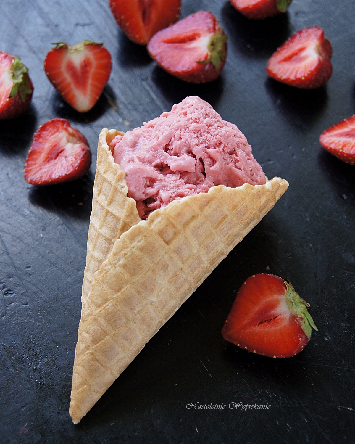 W tym roku zaszalałam z truskawkami (wystarczy spojrzeć na kilka ostatnich przepisów- wszędzie te małe pyszne czerwone owoce). Truskawkowe lody z poniższego przepisu…