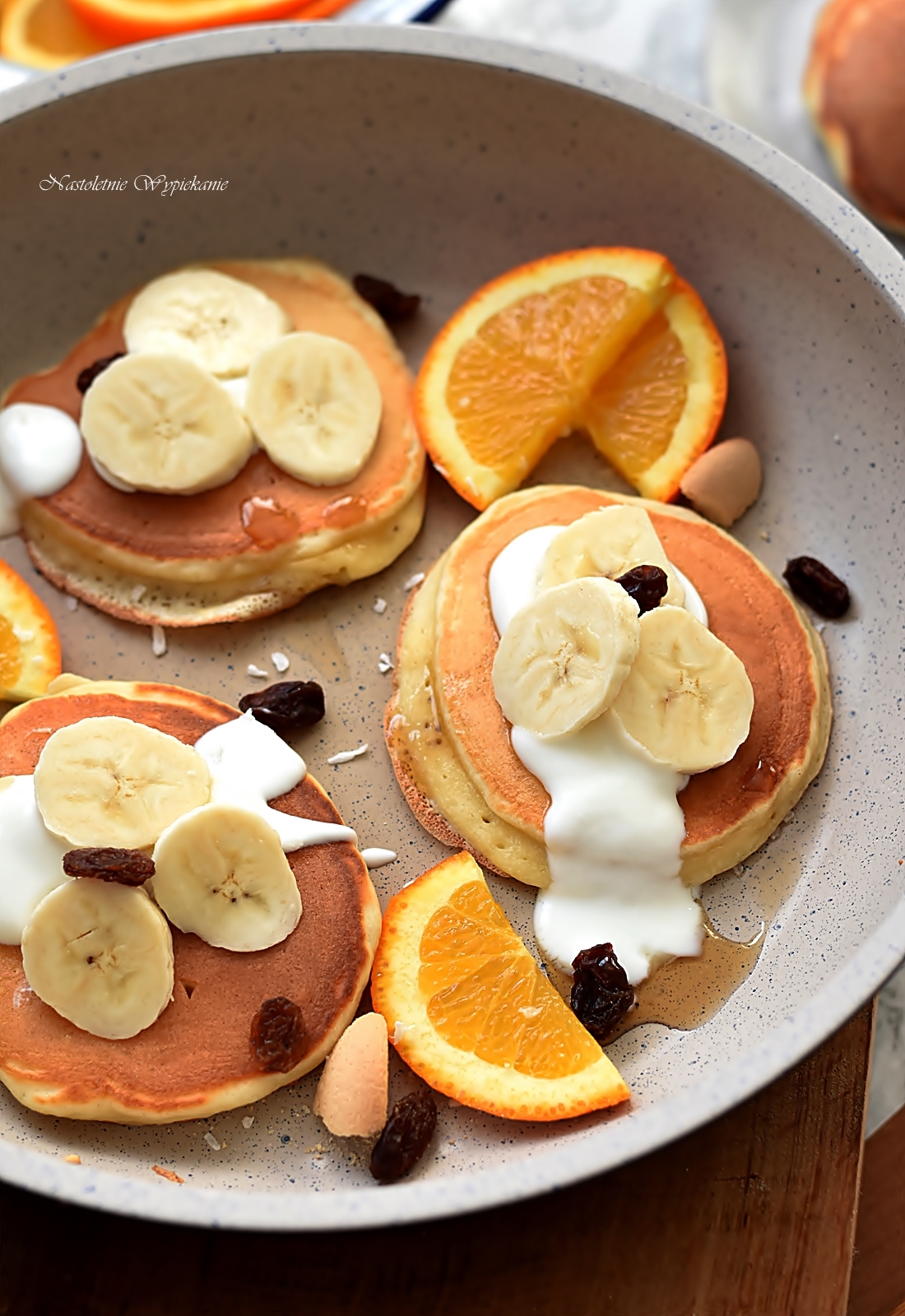 Placuszki na jogurcie naturalnym jak najlepsze amerykańskie pancakes. Puszyste, złociste, podane z ulubionymi owocami. Polecam na śniadanko lub do pudełeczka na drugie śniadanie…