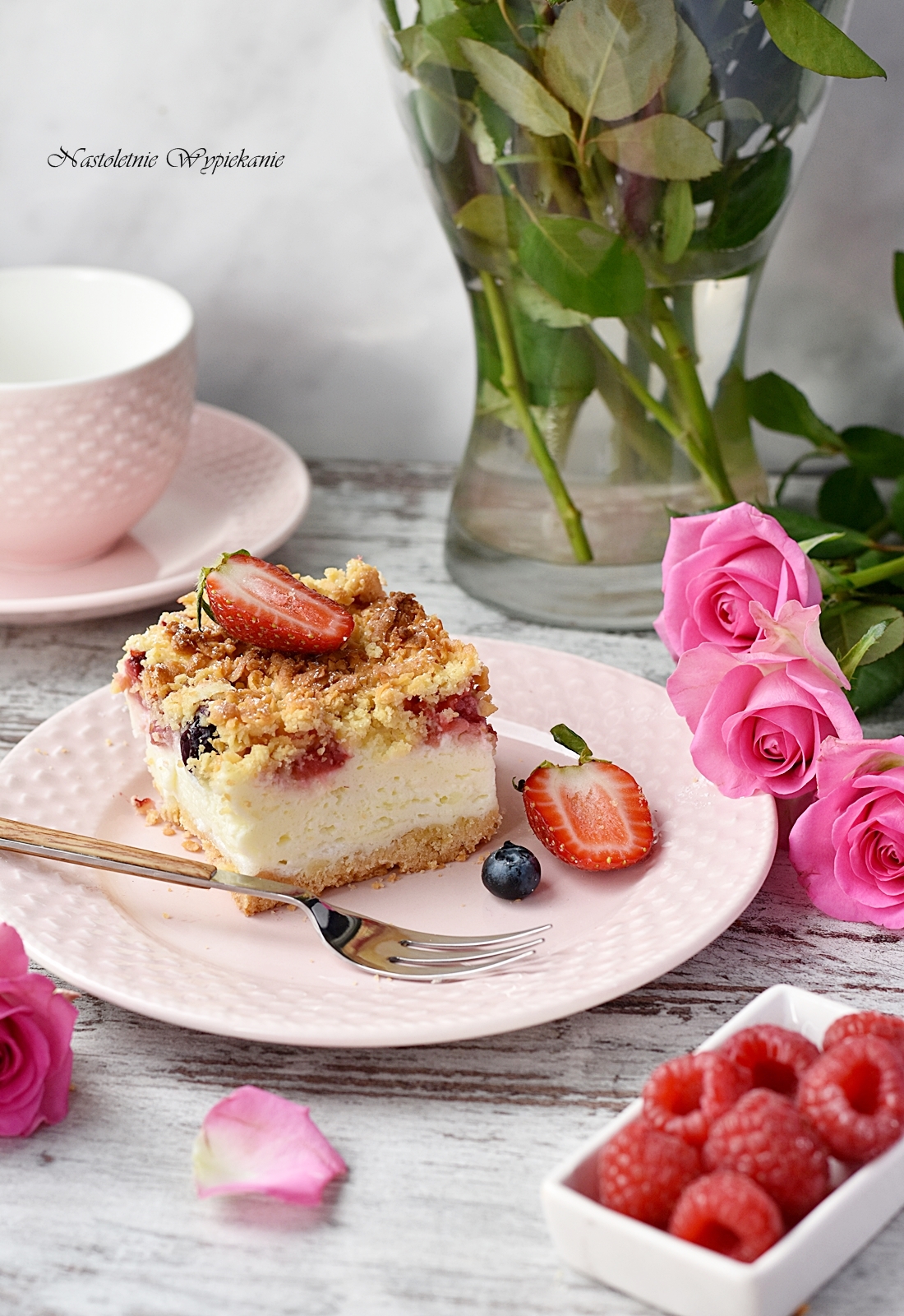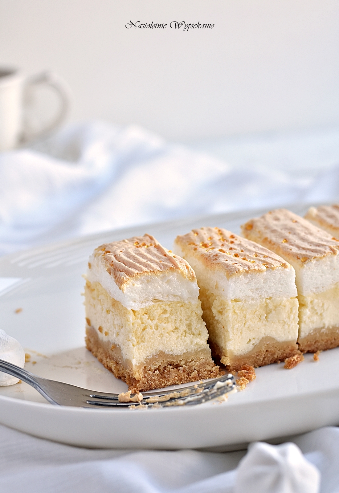 Delikatny, kremowy sernik, pieczony na kruchutkim spodzie, przykryty słodką pianką, na której widnieją małe, złociste, cukrowe kropelki. Ten moment, gdy zauważasz pierwsze kropelki…nie…